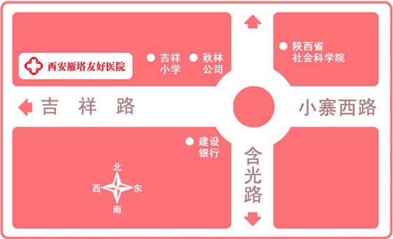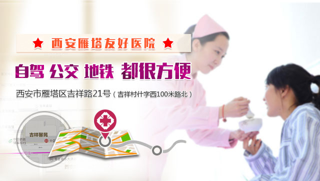直接导航“西安市雁塔区吉祥路21号”,如中途路线不清楚,可直接拨打24小时热线电话:029—88243120,方便您来院。