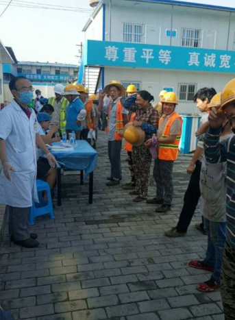 8月9日,又是一个阳光明媚的早上,西安雁塔友好医院再次来到中建一局的工地为农民工进行查体体检。