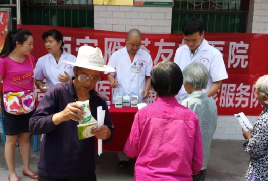 为贯彻落实西安市雁塔区卫生和计划生育局健康扶贫义诊工作,惠及贫困山区百姓健康,认真实践中央提出的“两学一做”和“扶贫攻坚”两条主线。2017年6月16日,西安雁塔友好医院积极响应区卫计局号召,由友好医院李娜院长带领医院健康扶贫义诊服务工作小组10余人前往周至县马召镇,开展精准医疗扶贫、送医送药慰问活动,扎实推进精准扶贫工作。