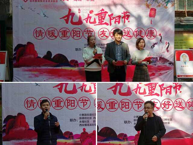 10月28日(本周六)就是我国传统的敬老节日——九九重阳节,为弘扬中华民族尊老、敬老、爱老、助老的传统美德,昨日(26日)下午,西安雁塔友好医院联合崇德坊社区、永福社区、崇业社区、212所社区、吉祥社区、四季社区齐聚崇德坊举办了“情暖重阳节 友好送健康”的文艺演出,社区老人及其他群众近200余人观看了表演。